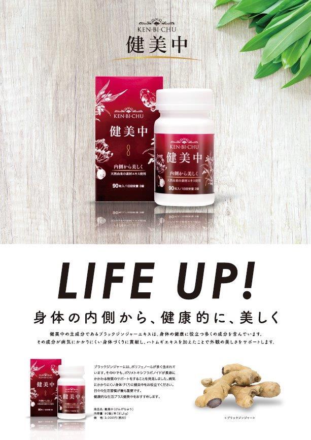 KEN-BI-CHU is a beauty supplement for those seeking beautiful skin and whitening, containing "Black Ginger" and "Astragalus membranaceus (Chinese herbal name: Yokuinin)" under the concept of "beauty from inside the body.