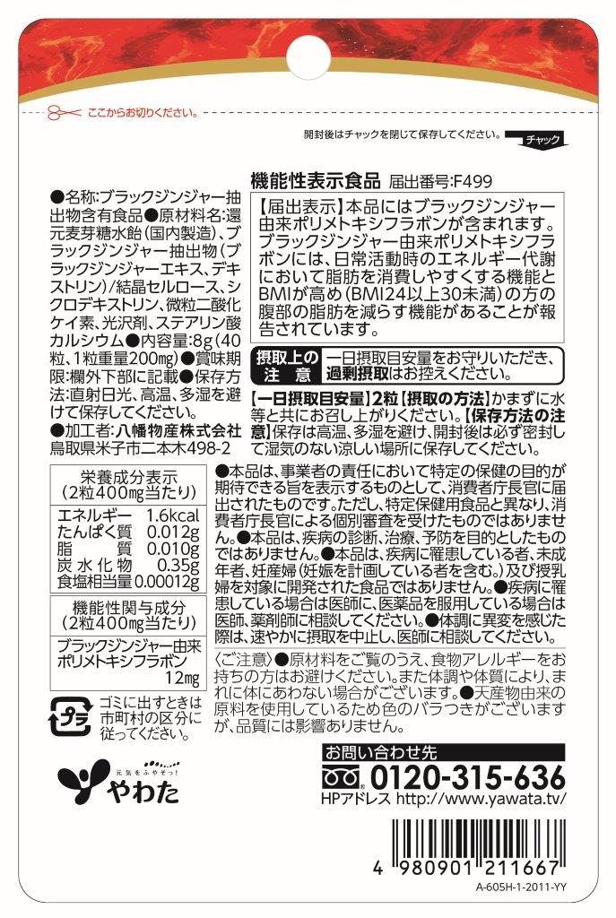 It has been reported that black ginger-derived polymethoxyflavone has a function of facilitating fat consumption in energy metabolism during daily activities and a function of reducing abdominal fat in people with high BMI (BMI 24 or more and less than 30).